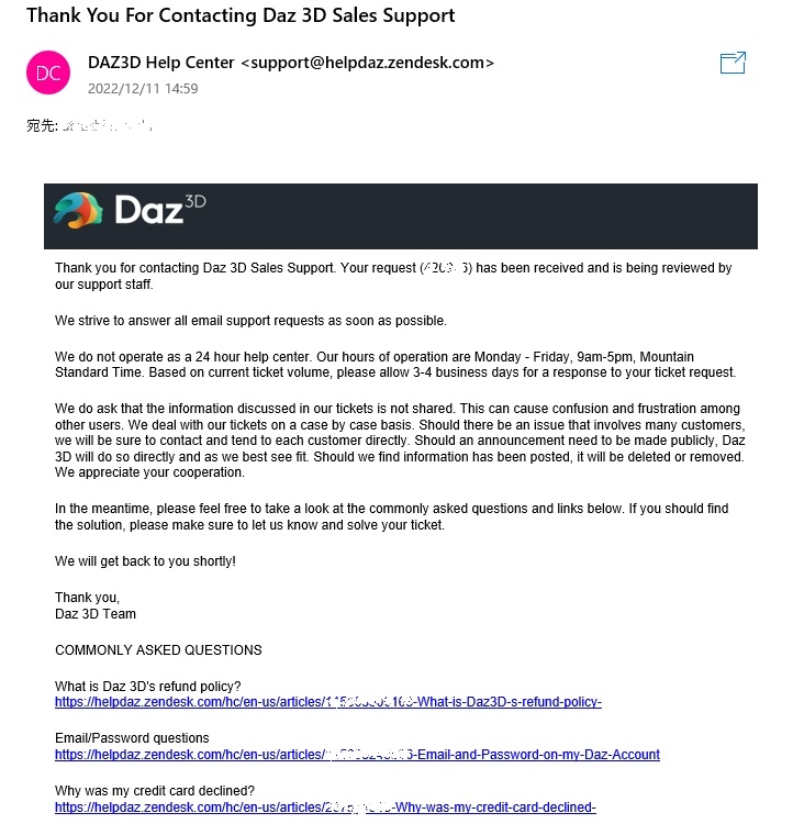 Daz 3D セールス サポートにお問い合わせいただきありがとうございます。