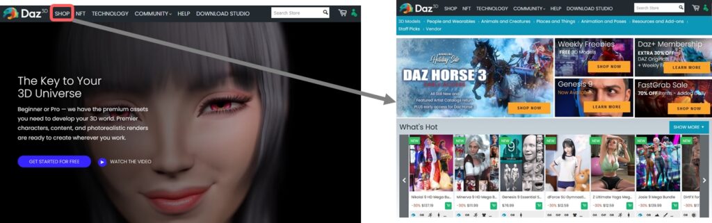 Daz Studio は Poser 互換の3Dモデリングソフトではありますが、その販売方法に違いがあります。