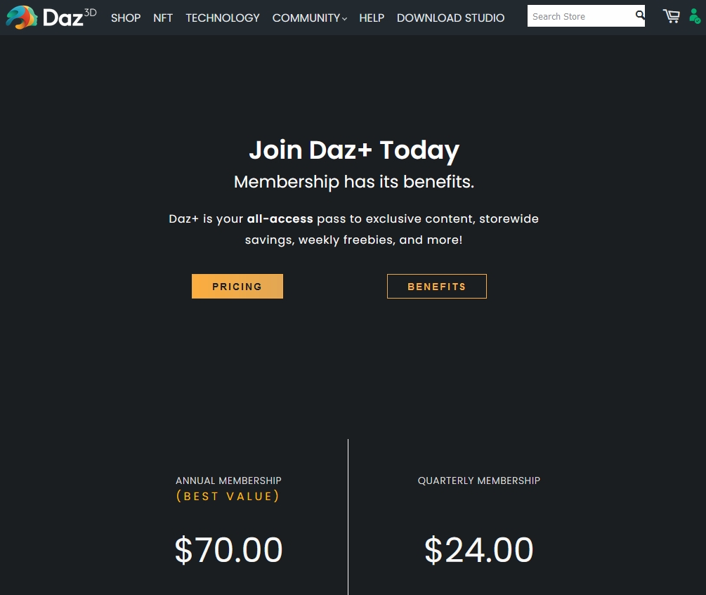 DAZ+は会員サービスで、こちらのページから加入できます。