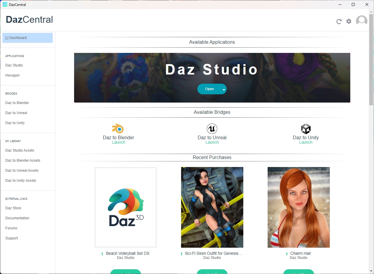 Daz Centralを起動した直後は、ダッシュボードが表示されます。