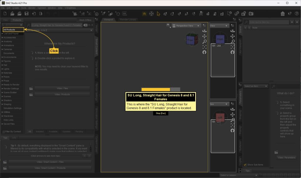 その際、画面に「アイテム名」+ product is located. というメッセージが表示され、「ESC」キーの入力待ちになるだけなので、素直にデスクトップのアイコンから Daz Studio を起動するのがよさそうです。