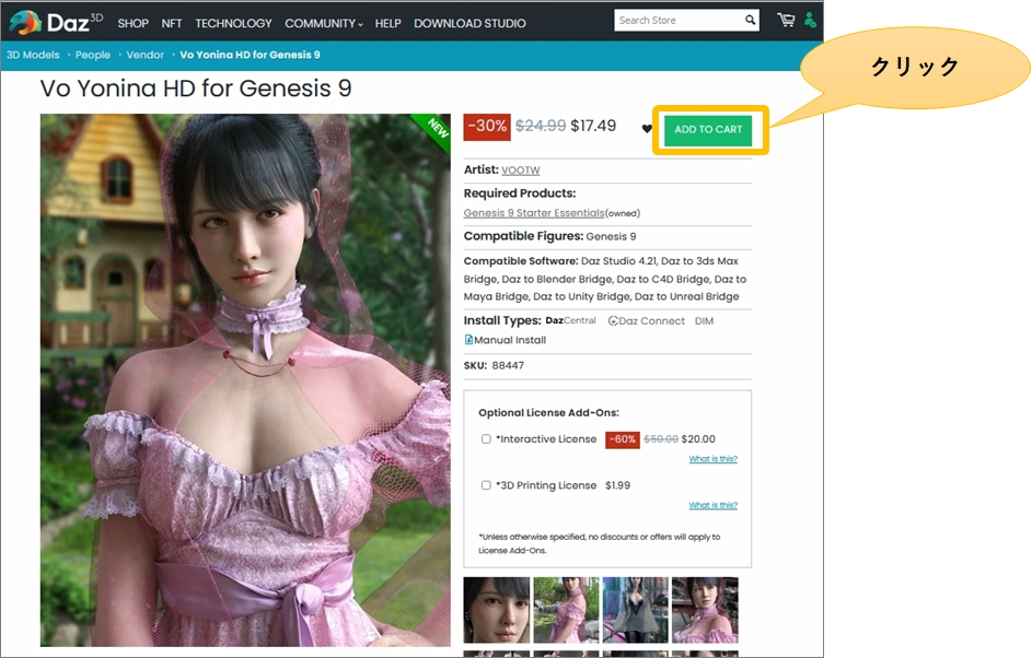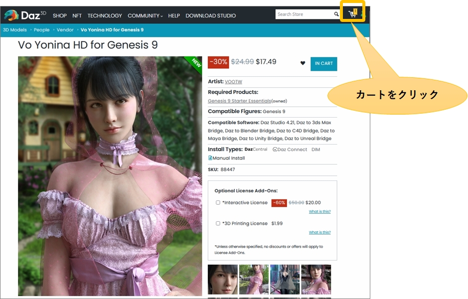 Daz3Dは海外サイトなので、表示は全て英語です。