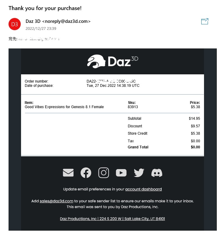 Daz 3D セールス サポートにお問い合わせいただきありがとうございます。