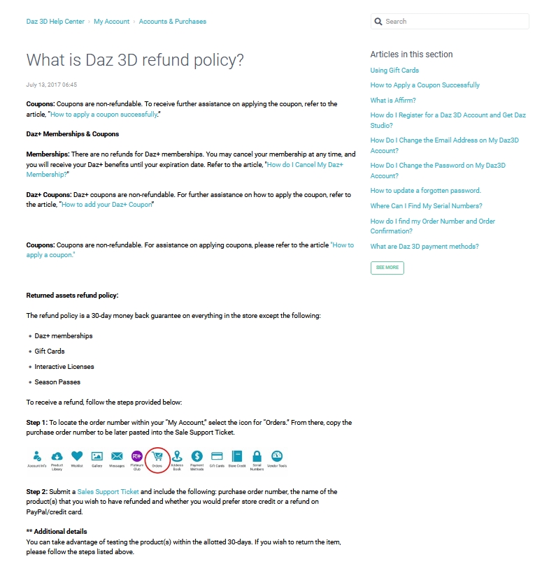 Daz3D のショップで購入したアイテムは、購入から1カ月以内であれば理由を問わず返品が可能です。