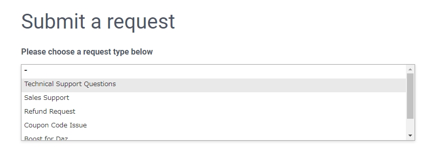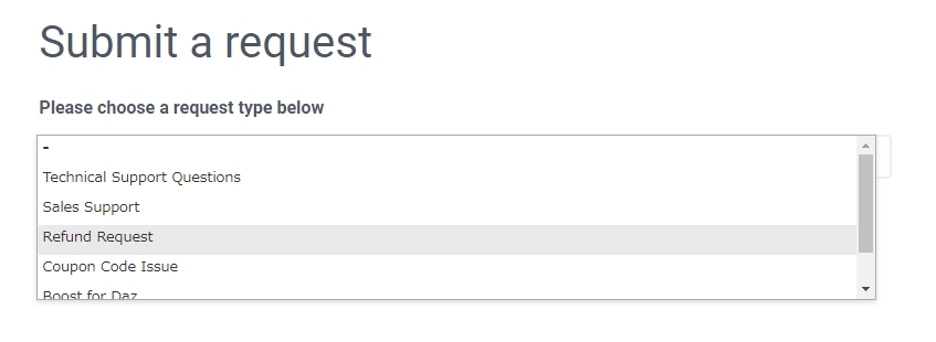 アイテムを買ったけど使い方が分からない、想定していた動作にならないなど、技術的な質問についても返金と同じ手順で問い合わせが可能です。