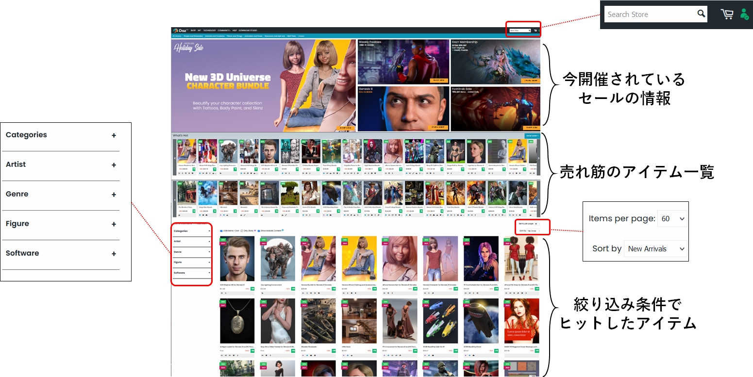ショップでは様々なアイテムが販売されているので、Daz+やセールをうまく使って、できるだけお得にご購入下さい。